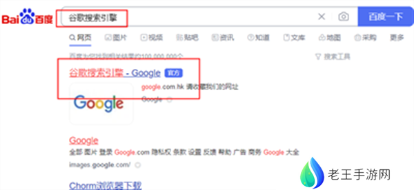 1.电脑端的用户,打开浏览器,在百度搜索“谷歌搜索引擎”。