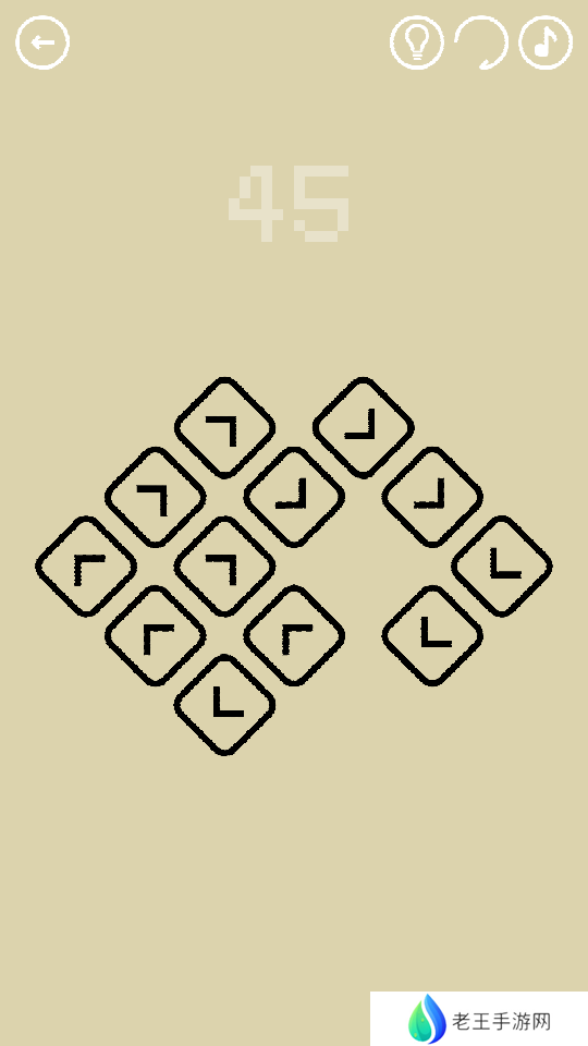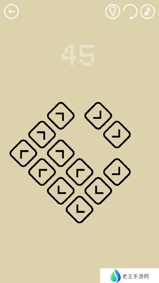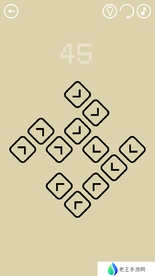 第十四关:每个角块和顺时针第三关块在一起会变黑,将所有变黑达到下图