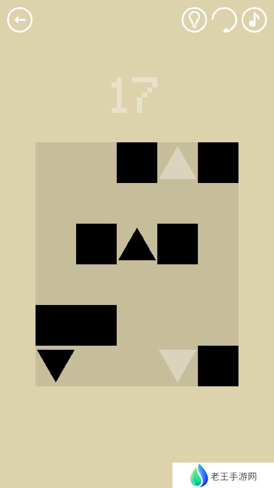 第十五关:右块的功能是让下个块 顺时针旋转九十度,左块的功能是跳过下一关块,完成一个口形,点中间黑块
