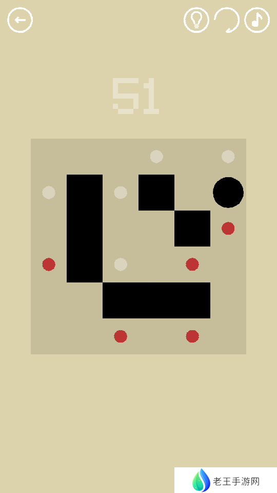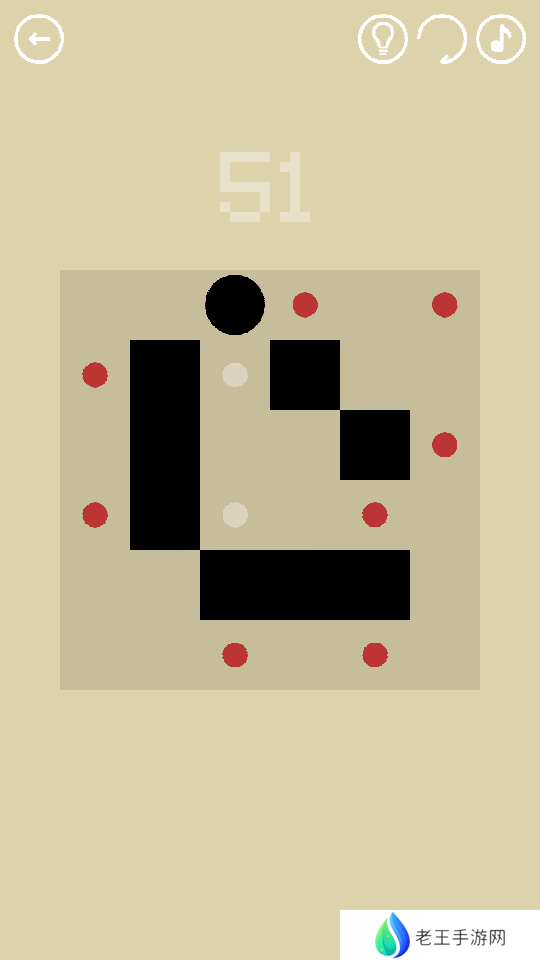 第十关:解法不唯一,下图为一种解法,再点击出现的黑球